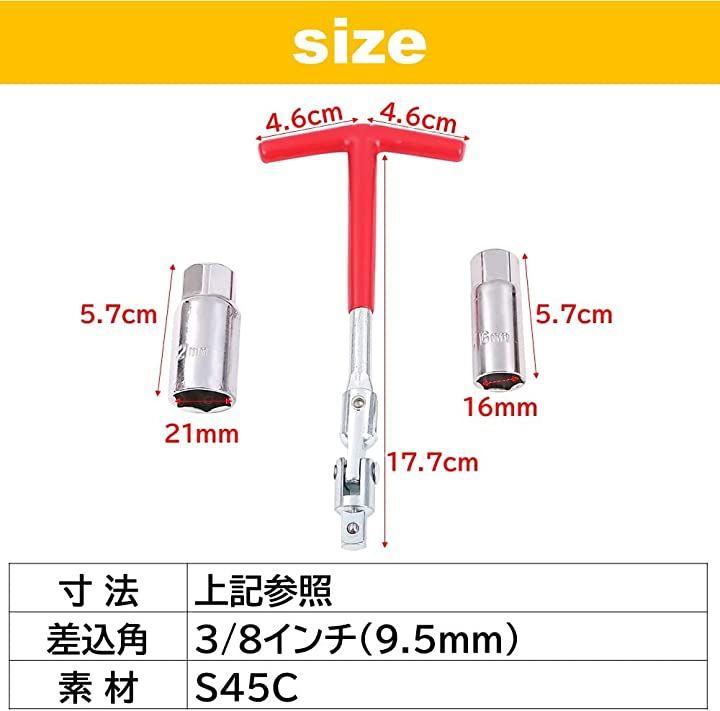 セット内容:T型ハンドル1本,16mm/21mmプラグソケット各1個