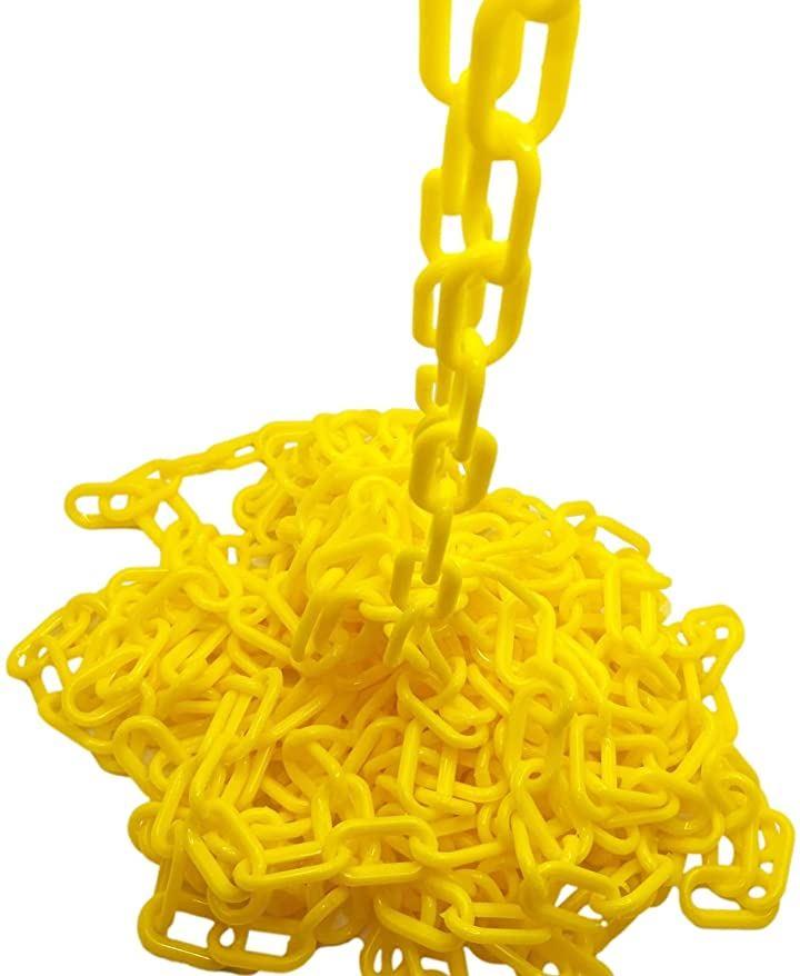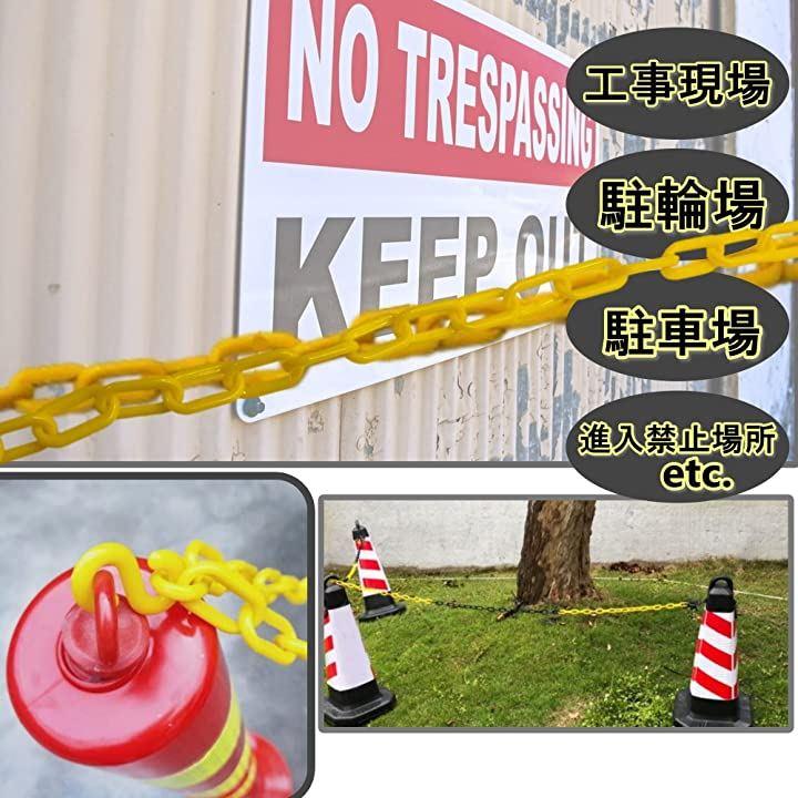 立ち入り禁止・進入禁止・駐車禁止・資材保管場所などの区域を区切る際に遠くから見ても目立つカラー、注意喚起や警告をイメージさせる黄色のプラスチックチェーンです。