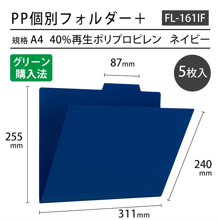 【特長1】よく使う書類管理におすすめ、丈夫な樹脂製の個別フォルダー【特長2】グリーン購入法適合商品【規格】A4-E 【入数】5枚入 【品番】FL-161F 【カラー】ネイビー【外形寸法】縦(山の高さ)240(+15)×横311mm 【仕様】ファスナー用の切れ目あり(16か所)、フォルダーラベル付き【材質】40%再生ポリプロピレン(PP)【免責事項】メーカーによる商品リニューアルに伴いパッケージが変更が行われた場合、新パッケージでお届け致します事ご了承願います。