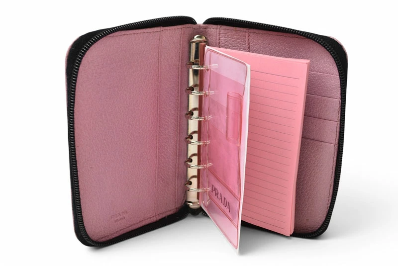 | 商品説明 | PRADA(プラダ)の上質なレザーを使用した、ラウンドファスナータイプのシステム手帳です。 一番人気のPMサイズです。ペンホルダー、カードポケットもついており、充実の機能性。コンパクトでバッグにも収納しやすく、旅先などにも重宝します。市販のレフィルを入れ替えれば、長くお使いいただけます。 やわらかなピンクカラーが上品で、ビジネスからプライベートまで幅広くお使いいただけます。 内側にはカードポケットを備え、実用性も兼ね備えたデザイン。リング式でリフィルの交換も簡単です。 プラダならではのミニマルで洗練された雰囲気が魅力のアイテムです。 |