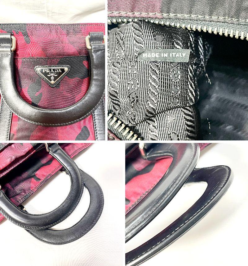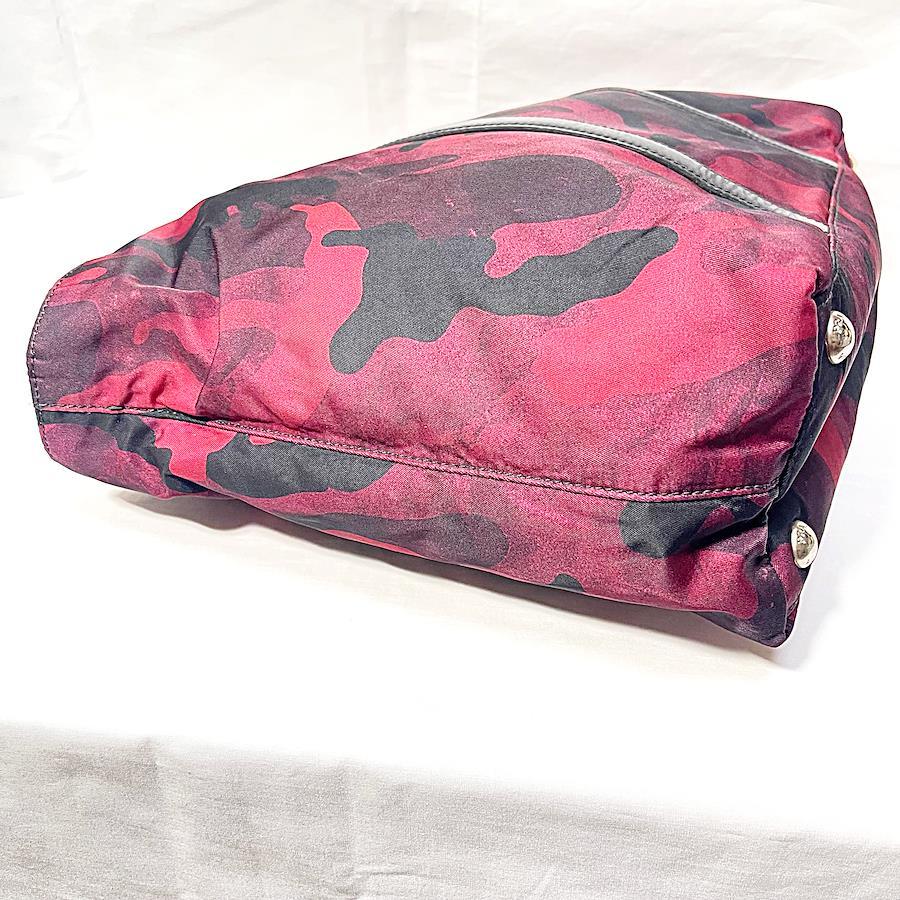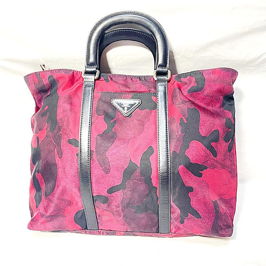 【ブランド】PRADA【品名】テスート カモフラージュ トートバッグ(ハンドバッグ)【対象】レディース/メンズ【実寸(cm)】横 29cm高さ 25.5cmまち 10cm取手高さ 9cm*多少の誤差はご容赦ください【素材】ナイロン系、レザー等【原産国】イタリア【カラー】レッド【商品状態】取手に小傷あり。やや使用感があるものの、目立ったダメージはなし。【管理番号】OJ7-2【付属品】なし。ショルダーストラップ欠品【備考】-