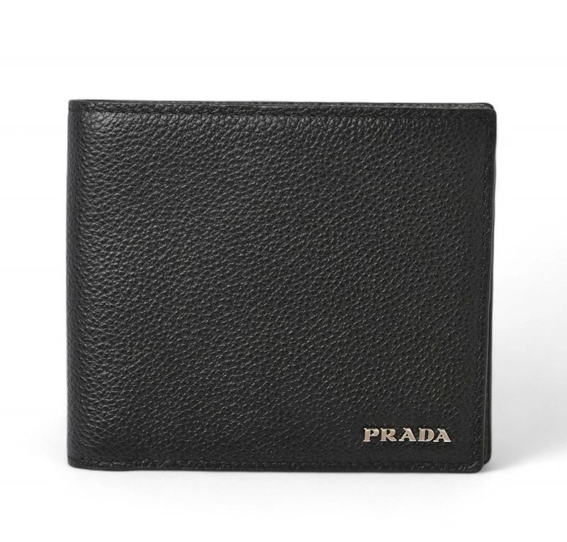 PRADA 折財布/札入れ メンズ向け 2MO513 型押しレザー ブラック/グレー