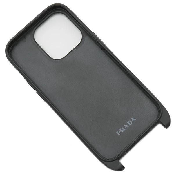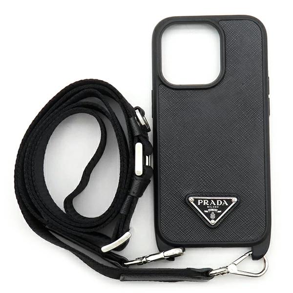 プラダ PRADA 携帯・スマホアクセサリー サフィアーノ トライアングル iPhoneカバー サフィアーノレザー ポリアミド ブラック 黒 三角ロゴ iPhone14 pro シルバー金具 - レディース定番 人気 美品 【中古】