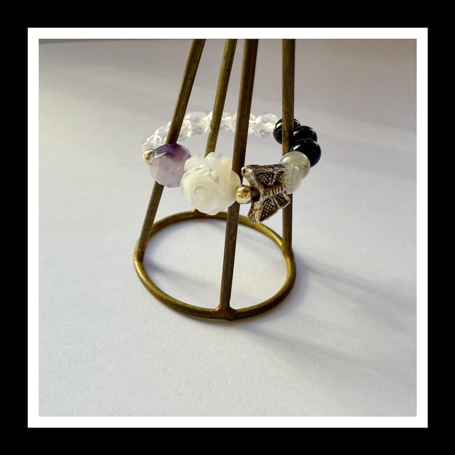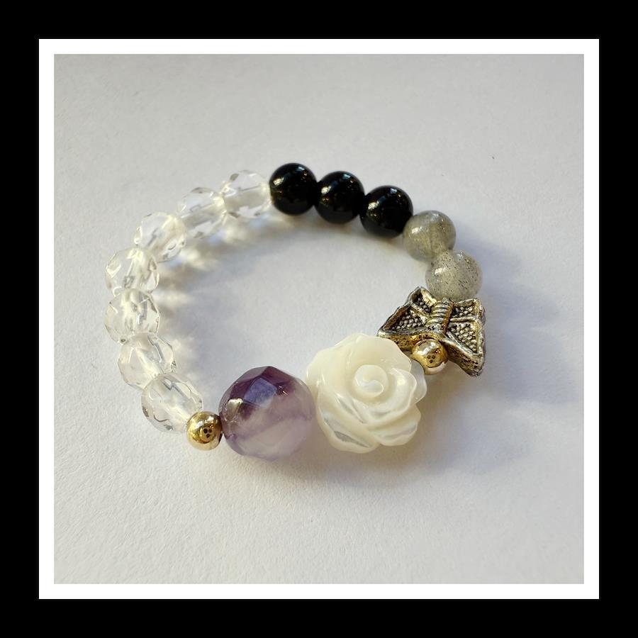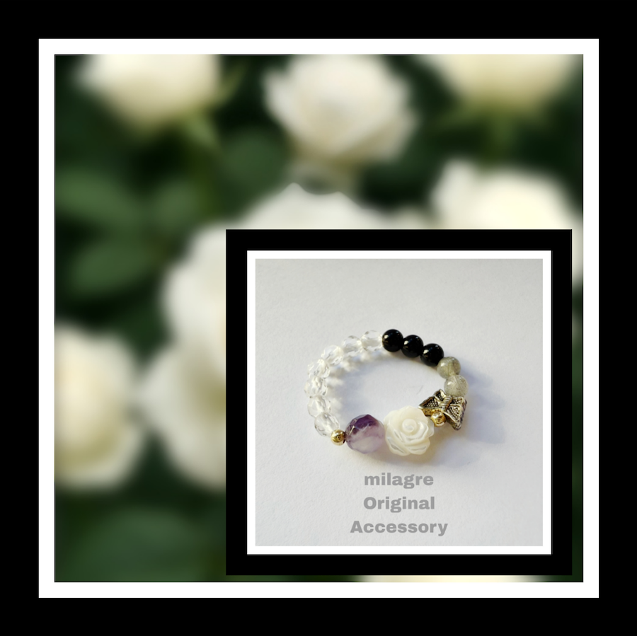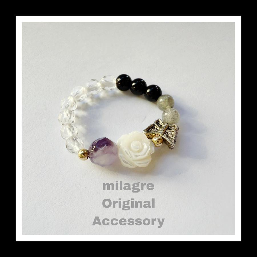✡️白薔薇マザーオブパール&ケープアメジスト&ラブラドライトのリングです。