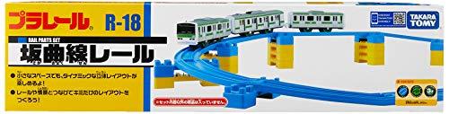 曲がりながら坂をのぼったりおりたりできるプラレール。A・B各4本、ミニ橋脚12個付。