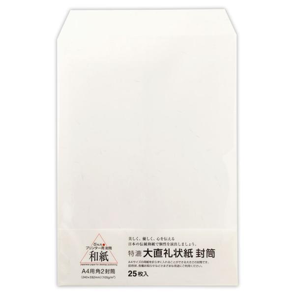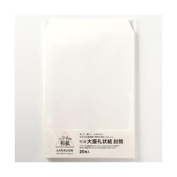 ※このシリーズはお取り寄せ可能です。在庫数量以上のご注文をご希望の方は、お問い合わせよりご連絡ください。※前面給紙のプリンターでは、機械の構造上、内部で封筒を折り返してから印刷しますので、紙詰まりが起こりやすくなります。あらかじめご了承ください。大礼紙の合わせた同じ和紙の用紙を使用した封筒。・インクジェットプリンター・レーザープリンター・PPCコピーなどでご使用頂けます。もちろんペンや毛筆でもお使い頂けますので、用紙と合わせてご利用下さい。【礼状紙】大礼紙に代わる業務用向けに製作したプリンター和紙。コストを抑える事で、企業様がもっと気軽に使える和紙となりました。色はややクリーム色に和紙感がアップしています。もちろん大礼紙同様に、白い繊維が漉き込まれておりますので、大礼紙のようにしっかりとプリンター和紙としてお使いいただけます。サイズ:角形2号(240×332mm)・A4が折らずに入ります、内容:25枚入り、インクジェットプリンター・レーザープリンター・PPCコピー対応