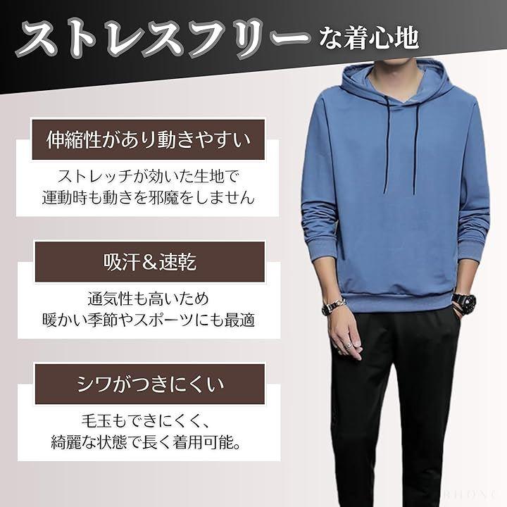 プルオーバー パーカー メンズ 長袖 スリム カジュアル シンプル 無地 4色