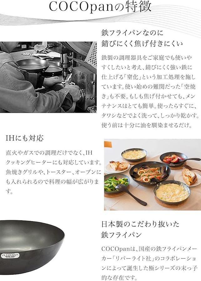「部品の一つまで、すべてが日本製の鉄フライパン」COCOpan(ココパン)は、国産の鉄フライパンメーカー「リバーライト社」のコラボレーションによって誕生した極シリーズの末っ子的な存在。