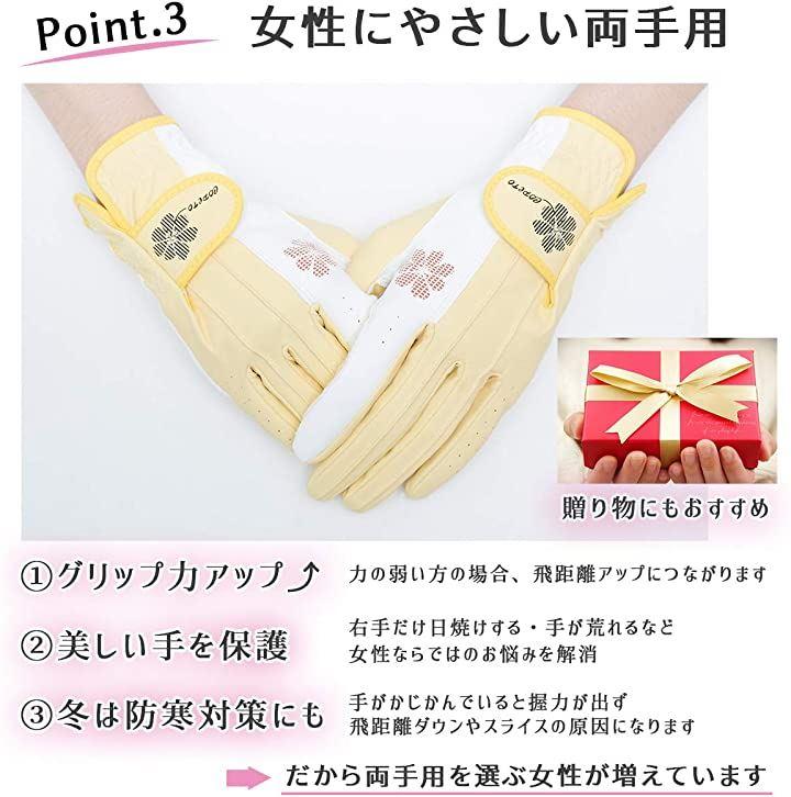 プレミーノ ゴルフ グローブ 手袋 レディース 両手 フィット感 耐久性 デザイン性 19 16.5cm-17.0cm