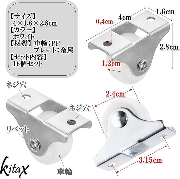 「サイズ」4x1.6x2.8cm「カラー」ホワイト「材質」車輪:PP(ポリプロピレン)/プレート:金属「セット内容」16個セット