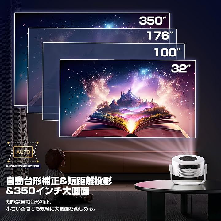 「短距離で超大画面投影&空間利用率最大化」:このプロジェクターはわずか0.5メートルの短距離で超大画面を投影でき、小さな住居でもジャイアントスクリーン体験を実現。