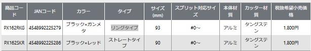 小さくても操作しやすいプライヤー指にフィットする形状のミニプライヤー。コンパクトで携行性に優れながらも握りやすいフィット形状で操作性も抜群。リングタイプは、全長93mm。指を入れて握れるのでハサミ感覚で操作が可能。ストレートタイプは、さらにコンパクトな全長90mm。握りやすいフィット形状。どちらのモデルも#0から対応するスプリットリングオープナー、PE対応のタングステンカッター、安全なロック機構を搭載。小さくても主戦力になる軽量多機能プライヤー。スプリット対応サイズ:#0〜本体材質:アルミカッター材質:タングステン