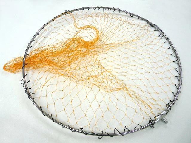 サビに強いステンレス製フレーム。水切れの良いモノフィラメント網を使用。