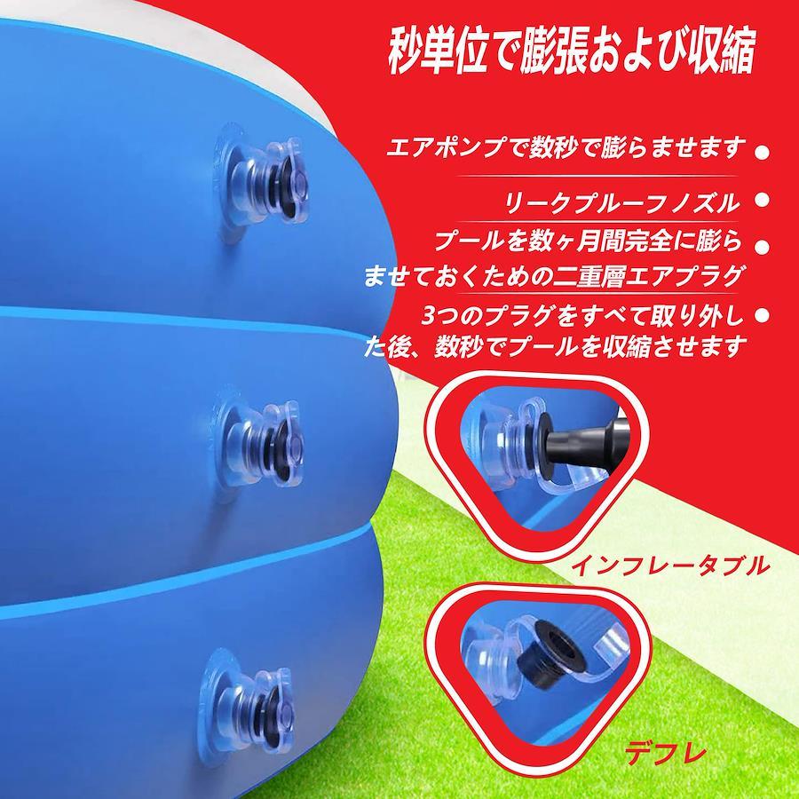 ??♀?【 家でも楽しく遊べるハッピーファミリープール 】家でも楽しく遊びを! 自粛生活が推奨される現在、夏の暑い時期に家でも楽しく遊べる大型ハッピーファミリープールを開発しました。ご自宅や公園などでファミリープールを使って楽しく遊んでください。また大型ビニールプール使用時は必ず保護者の管理の元ご使用ください。♀?【3つ気室&使用便利】こちらのプールは上下で別れた3気室タイプなので、空気の偏りが起きにくく、水を溜めても安定した設計となっています。新型二重弁のキャップ構造のため、万が一、外蓋が開いても空気が漏れないので安心です。底面には、排水ホースも付き、面倒な排水をスムーズに、後片付けが簡単です!?このセットには空気いれ道具が含まりません。♀?【安全と快適】柔らかい泡底デザインの子供用プールで、厚い厚さ、優れた靭性でできています。子供のみずみずしい裏に優しくて、子供に柔らかい足触りをもたらします。それと同時に、滑り止めで、子供たちが遊んでいる途中で滑ることを防いで、安全な水遊び環境を作ります。♀?【環境に優しい素材】この家庭用プールが採用する材質は人体に無害であることはもちろん、環境に優しくて耐久性と耐磨耗性が高いPVC材質です。水漏れやパンクをしっかりと防ぎ、お子さまが誤って滑ってしまうのも予防できます。従来製品の50%の厚さを加えたPVC材質によって、高温にも強くなり、いつでも安心して利用可能なプールを実現しました。♀?【 安心の保証内容 】安心してご使用頂くために、1ヶ月の保証期間付きとなっております。より多くのお客様にご利用頂けるように、ビニールプールに万が一不具合が御座いましたら、お手数ですがセラー問い合わせ先にご連絡下さい。