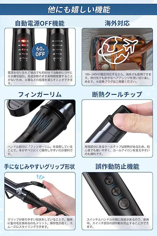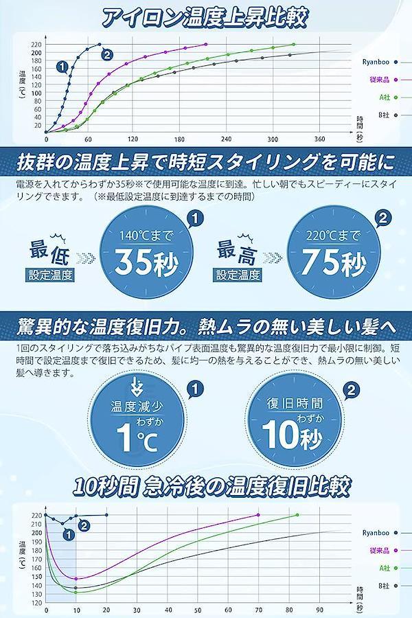 「セラミックコーティング加工」髪にやさしく素早く熱を伝えるセラミックコーティング使用しているから立ち上がりが速い。髪との摩擦が少なく、滑りがなめらか。
