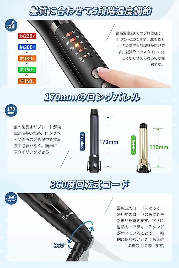 「5段階の温度調節」最高温度220℃のプロ仕様で、140℃~220℃まで、20℃ごとに5段階で温度調整が可能です。