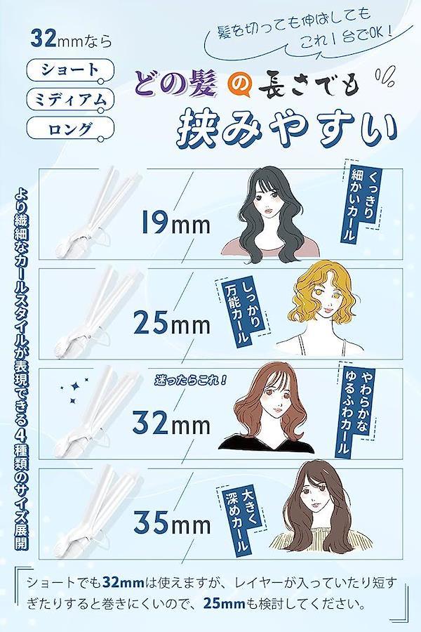 他の製品よりプレートが約60mm長いため、ロングヘアーでも一気に巻けるロングバレル。