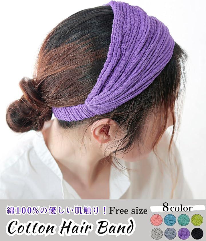 「綿100%の優しい肌触り」「肌に優しく快適なヘアバンドが欲しい」そんな方におすすめのコットン100% のヘアーバンドです。
