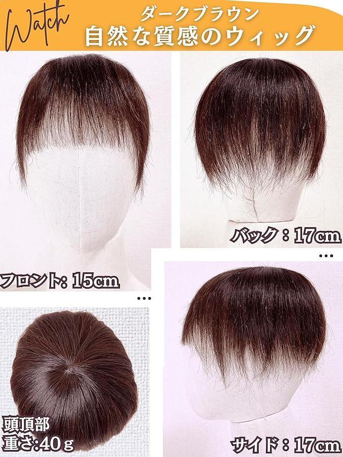 「商品詳細」(3)サイズ:ストレートショート (フロント15cm、バック17cm、サイド17cm) ベースサイズ:13x13cm (4)重さ:約40g (5)カラー:ダークブラウン(栗色) (6)対象: メンズ 男性 レディース 女性 医療用 (7)髪質:少し細めでストレート