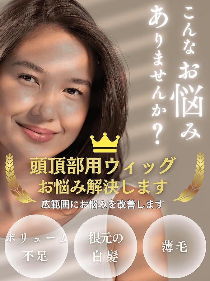 「つむじ隠し専用」(2)特徴:「つむじにヘアプラスmaxi+」はつむじや頭頂部の薄毛や生え際の白髪にお悩みの、ウィッグ、付け毛、カツラ初心者に最適の商品。