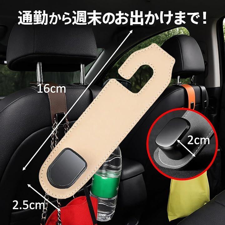 車内をすっきり快適に。足元広々ドライブ バッグや買い物袋を床に置かず、ヘッドレストに吊るして収納できるヘッドレストフック2個セットです。