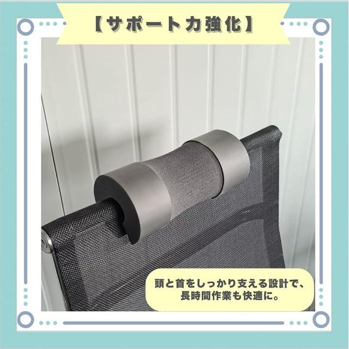 「サポート力強化」頭と首をしっかり支える設計で、長時間作業も快適に。
