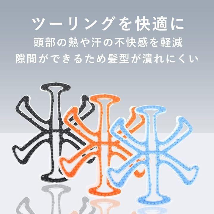 「ツーリング中のストレス軽減に」柔らかなシリコンパッドをヘルメットの裏側にセットするだけでヘルメット内部に空気の流れをつくり、頭部にこもる熱、汗、潰れてしまう髪、これらの問題を軽減します。