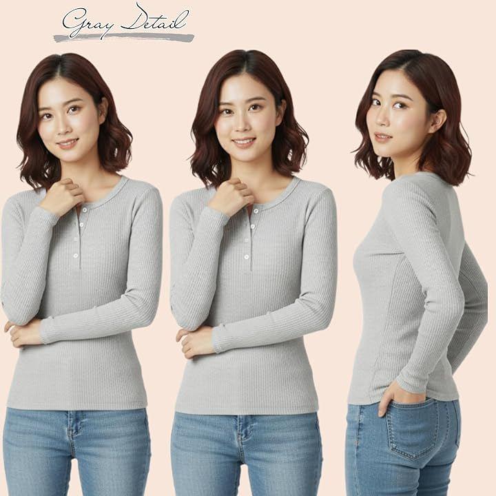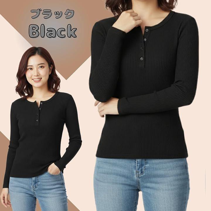デコルテ美人を演出するヘンリーネックと、細見えリブでスタイルアップ。