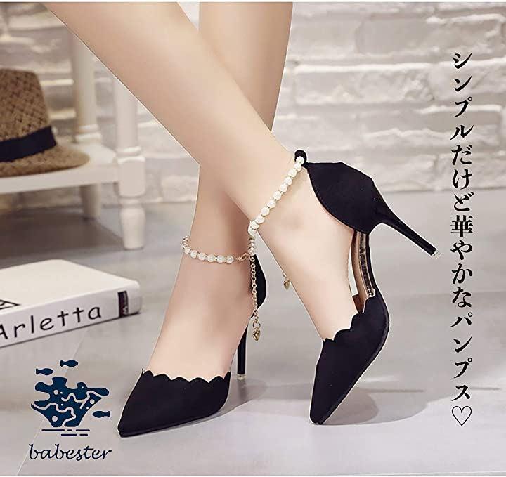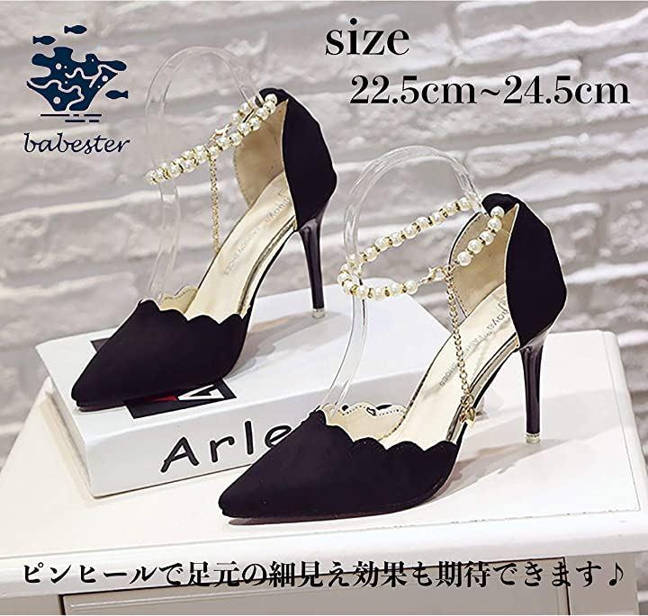 babester(ベイブスター)パンプス8cmヒールおしゃれベルト付き結婚式パーティ