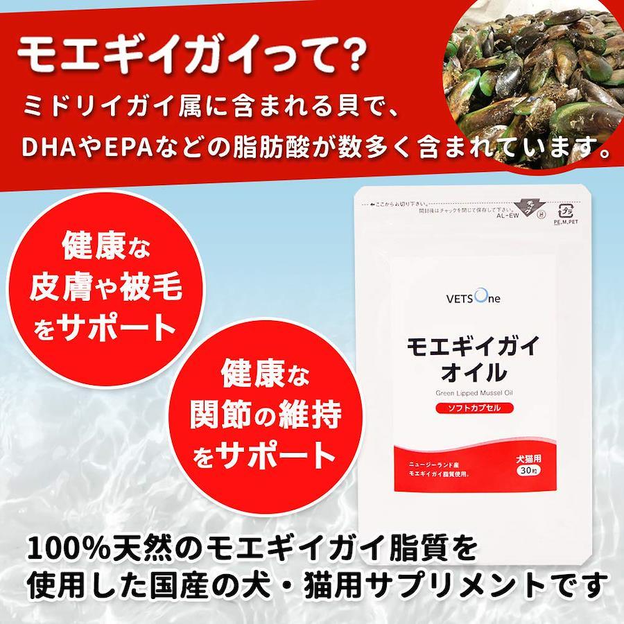100%天然のニュージーランド産モエギイガイ脂質を使用した犬猫用サプリメント。【特長】・緑イ貝属に含まれるモエギイガイには、動物に有益な脂肪酸が数多く含まれています。・低温でモエギイガイ非極性脂質を抽出。・オリーブオイル、d-α-トコフェロール(ビタミンE)含有。・モエギイガイ脂質は、HACCP認定のあるニュージーランドの工場で作られています。また、ニュージーランド政府による海洋生物加工ライセンスを取得しています。ニュージーランド政府機関であるニュージーランド食品安全局の検査に合格したもののみが輸出され、日本へ届けられています。・小型犬、猫にも与えやすい小さなソフトカプセル。日本国内の工場でカプセル化しています。<こんな思いのある飼い主様に>・健康な皮膚や被毛を維持したい・健康な関節を維持したい・いつまでも健康で元気でいてほしい■更新日時:2023/09/13 10:28:13