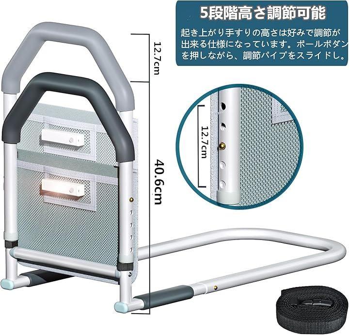 「5段階高さ調節可能&耐荷重性抜群」: ベッドアシストレールは高さを約40.6cm から 53.3cm まで調節可能で、高さは好みで調節が出来る仕様になっています。