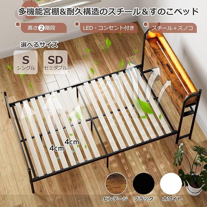 *商品サイズ:画像をご覧ください *商品重量 約25kg *材質 本体:スチール(粉体塗装) 棚板:MDF *バリエーション:シングル、セミダブル *耐荷重 本体:約350kg ヘッド部棚:約20kg *カラー ブラック・ホワイト