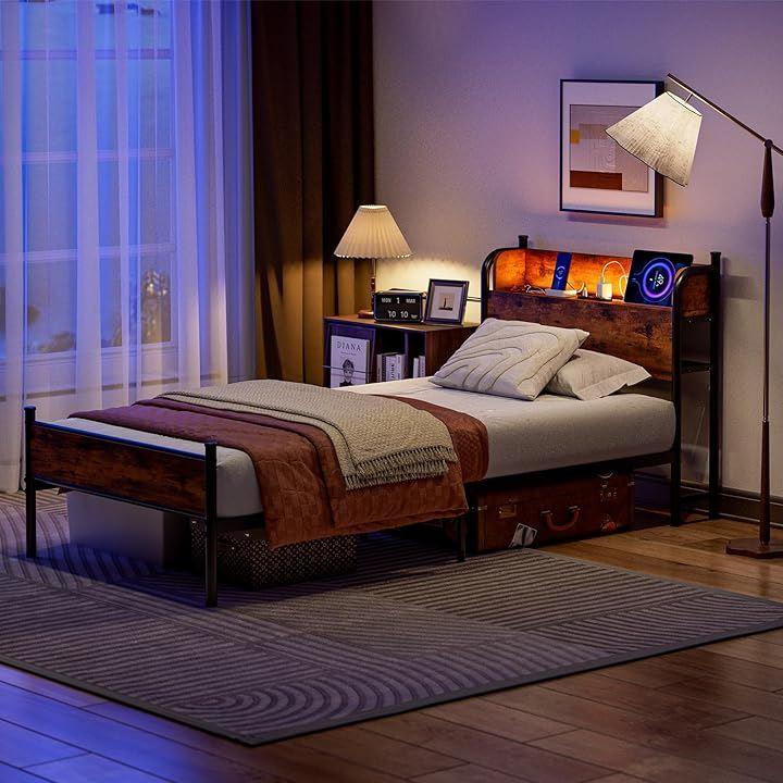 「コンセント付き便利な宫棚で枕元も充実」奥行17CM と広い収納棚が付いており、スマホ、眼鏡、時計などの小物はもちろん、本、コップやナイトライトも手の届く範囲に置いておけるシングルベッドフレームです。