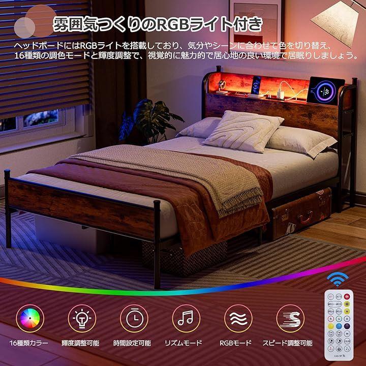 「居眠り雰囲気つくりのRGBライト付きヘッドボード」ヘッドボードにはLEDライトが付いており、暗い夜でも柔らかく照らし、暗い環境でも安心してご使用いただけます。