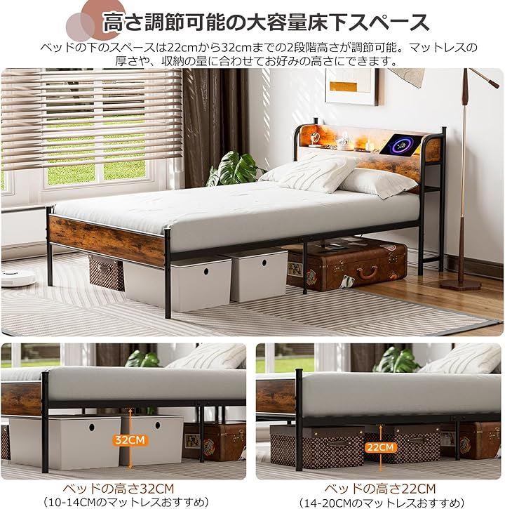 「2段階高さ調節&床下スペ一スを収納に有効活用」ベッドの下のスペースは22cmから最大32cmまでの高さが調節可能。