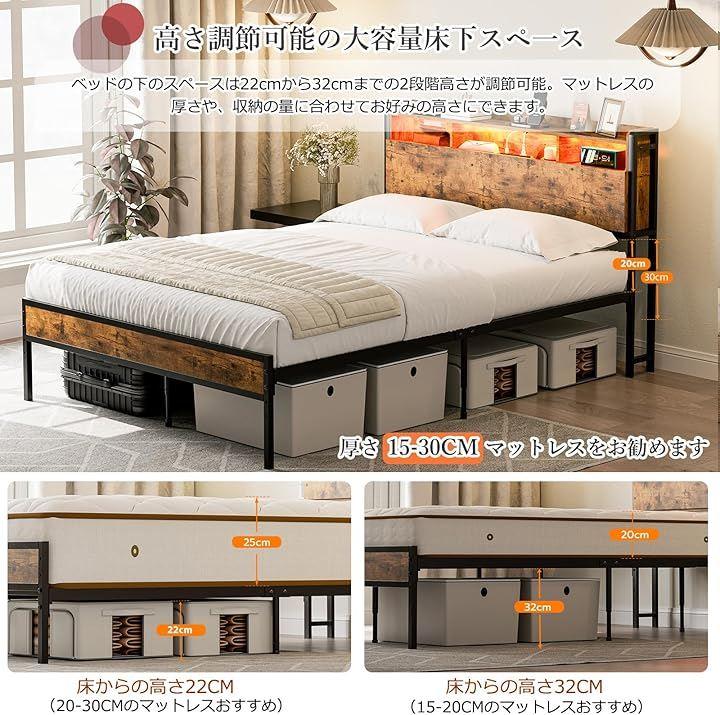 「2段階高さ調整で、床下をまるごと収納スペースに。」ベッドフレームの高さは22cmまたは32cmの2段階で調節可能。