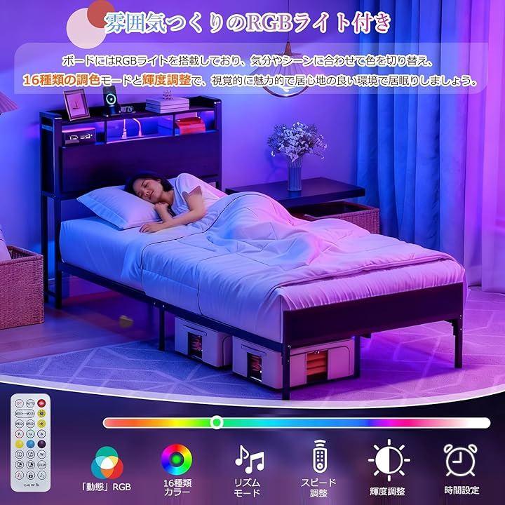 「居眠り雰囲気つくりのRGBライト付きヘッドボード」ヘッドボードに内蔵されたマルチカラーLEDライトは、お好みの色や明るさ、点滅速度を自由に調整可能。
