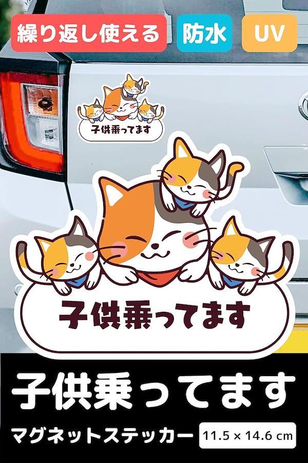 ベビーインカー 子供が乗ってます 車 ステッカー 猫 大きめ kids in car かわいい