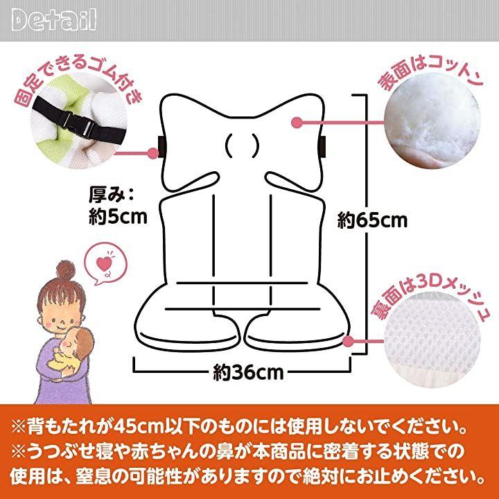 首クッションとベビーカーシートの一体型、ベビーカーから外さずに安全ベルトを装着できます。