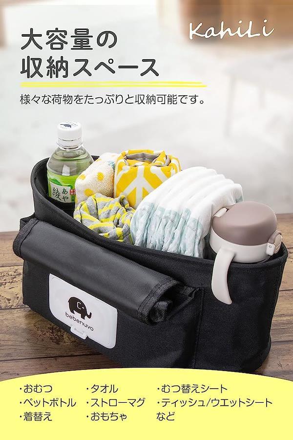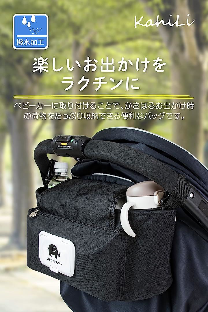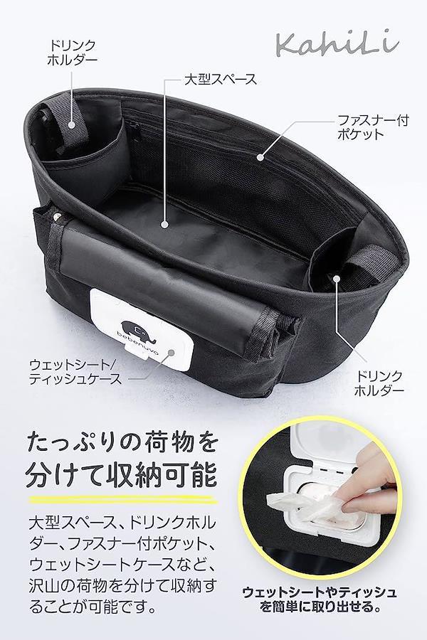 細かく分かれていないのでおむつポーチや着替えセットのような大きなものも簡単に出し入れができます.ウエットティッシュ入れが内蔵されているので,外出時の突然の汚れにも慌てることなく対応でき,おすすめです。