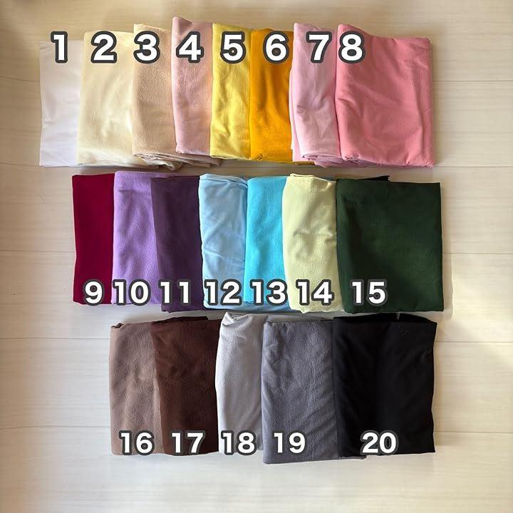 1.白 2.クリーム 3.ベージュ 4.くすみピンク 5.黄色 6.オレンジ 7.ピンク 8.サーモンピンク 9.赤 10.紫 11.ぶどう 12.ライトブルー 13.ブルー 14.緑 15.ディープグリーン 16.ブラウン 17.コーヒー 18.ライトグレー 19.グレー 20.黒