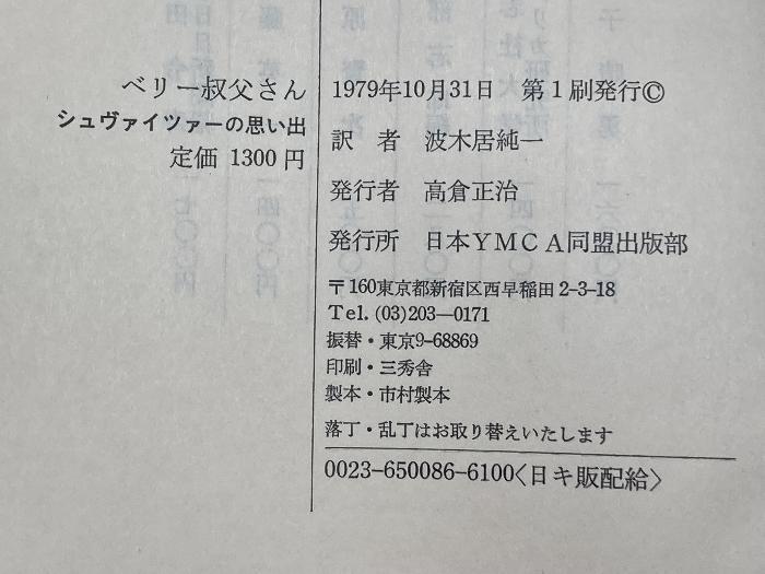 ベリー叔父さん―シュヴァイツァーの想い出 (1979年) 日本YMCA同盟出版部 ズザンネ・オスヴァルト