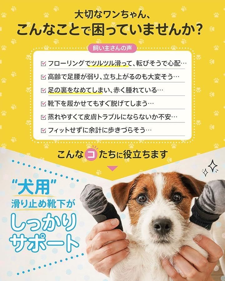 両面グリップ&脱げにくい設計。犬用滑り止め靴下 愛犬の歩行をしっかりサポートし、快適な毎日を応援する犬用滑り止め靴下です。