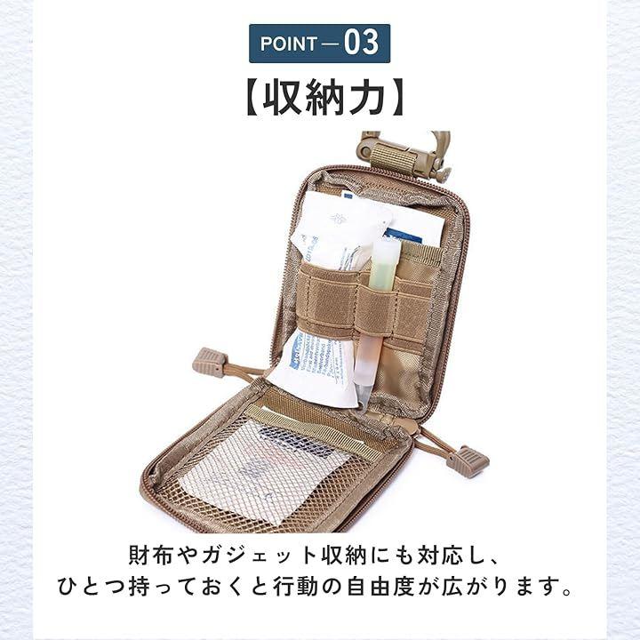 「耐久性抜群」軽さと耐久性を兼ね備えた設計で、アウトドアから日常までストレスなく使える頼れるポーチです。