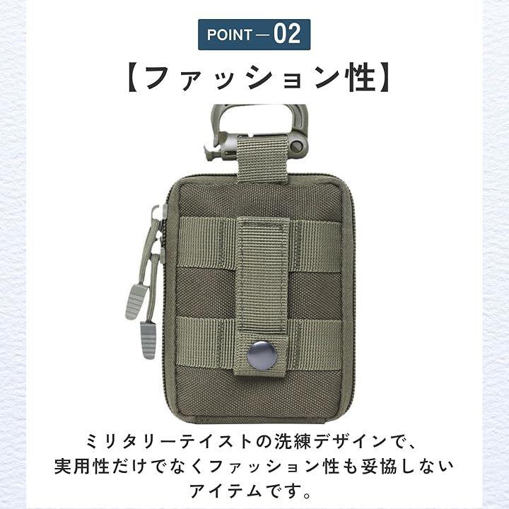 「ファッション性」ミリタリーテイストの洗練デザインで、実用性だけでなくファッション性も妥協しないアイテムです。