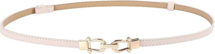 「カラー」ゴールドバックル:ブラック、ブラウン、ライトブラウン、ベージュ パールバックル:ブラック、ライトブラウン、ホワイト 「素材」PUレザー 「サイズ」ゴールドバックル:54~92cmx1cm(ウエスト幅xベルト幅) パールバックル:48~90cmx1cm(ウエスト幅xベルト幅) *アジャスターでウエストサイズを調整できます。