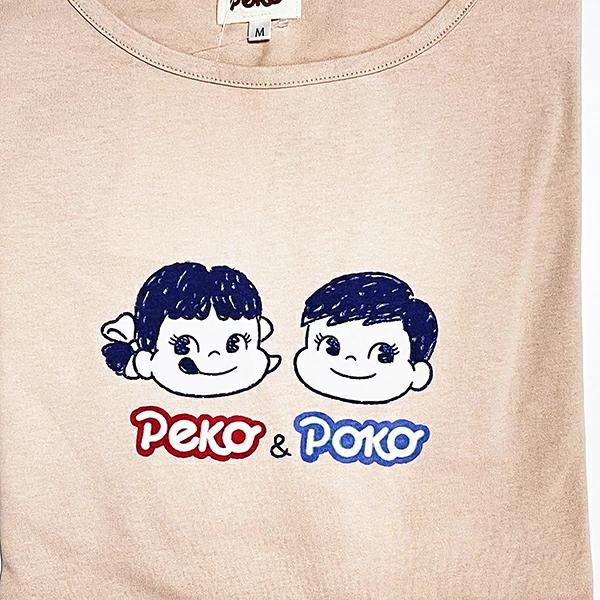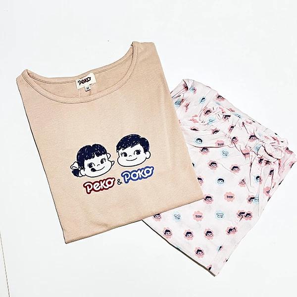 ペコちゃんとポコちゃんが正面にデザインされているルームウェアです。ズボンはミルキーキャンディ柄でカワイイ♪Tシャツ生地で着心地も◎【サイズ:L バスト86~94】
