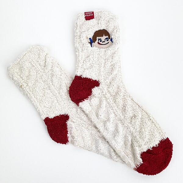 寒い日もぽかぽか★足元の冷え・防寒対策にぴったりなペコちゃんのルームソックスです♪まるでマシュマロのような触り心地♪程よく伸縮するのでリラックスタイムにも最適です。足元に付いたすべり止めでフローリングも安心してご利用できます。かわいいボックス型パッケージ入りでギフトにもおススメです♪【サイズ:約22cm~25cm】
