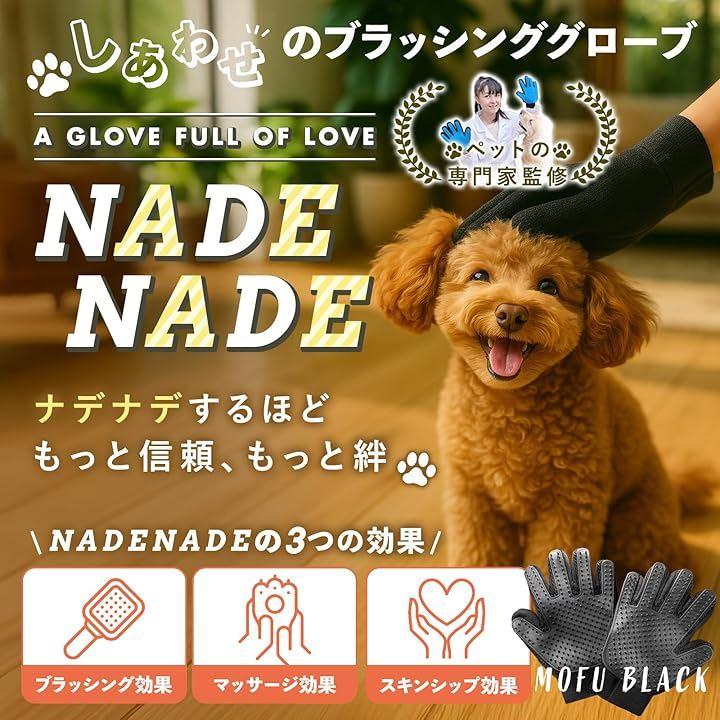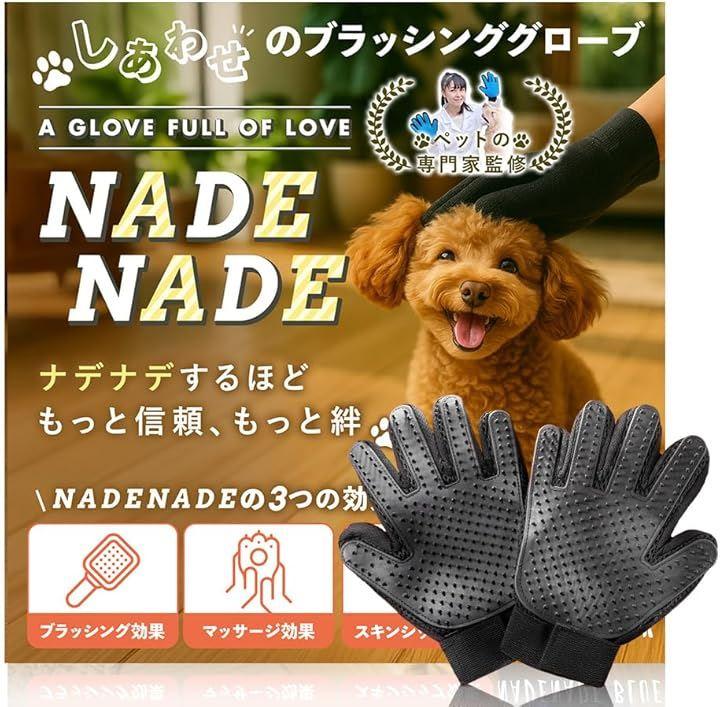 「ブラッシンググローブ NADENADRE ナデナデ」 NADENADEは、「ペットともっと優しく、もっと楽しくふれあいたい」という飼い主さんの声から生まれた両手セットのブラッシンググローブです。