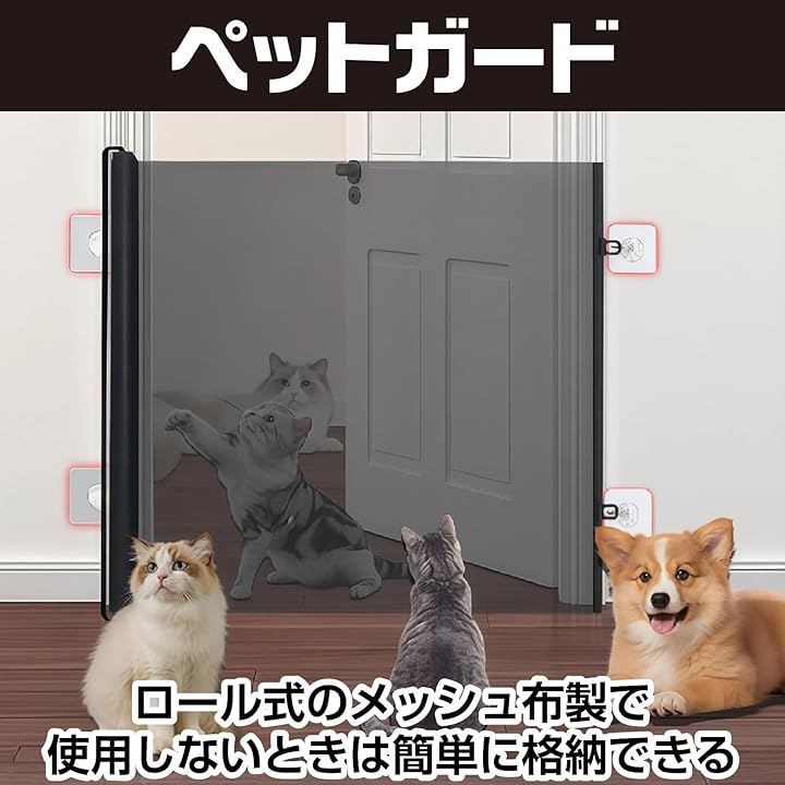 ペットゲート ロール式 78x180cm 巻き取り式 穴あけ不要 自立可能 ペットガード 伸縮 折りたたみ メッシュ 犬 猫 赤ちゃん 室内 置くだけ 玄関